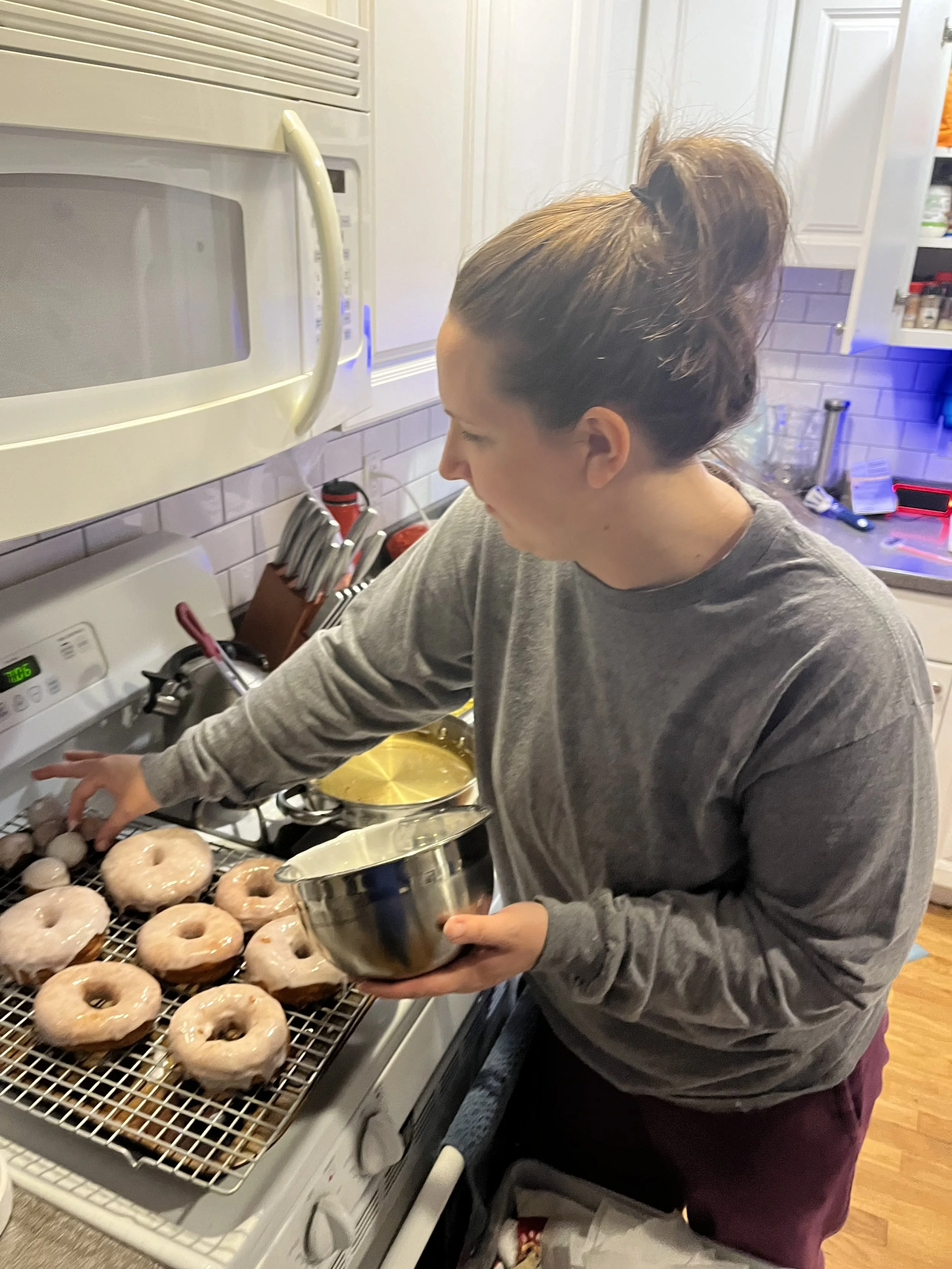 That’s where donuts come back into play. Jordan doesn’t have to be the sole breadwinner forever and I get to live out my dream! From that point on everything began to fall into place. I started working on donuts again, tweaking my recipe and my methods over and over. Staying up til 3 am some nights perfecting the art. I began apprenticing at a local bakery to gain even more experience. We turned our dining room into my own personal bakery. I started an LLC and began the preparations to become licensed all in a matter of weeks. It’s been a whirlwind but nothing has felt more right… or tasted more delicious!!